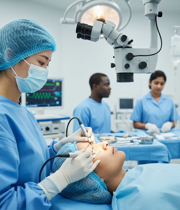 Chez Med Elite Experts, nous organisons la prise en charge complète du traitement de la cataracte au sein de cliniques ophtalmologiques modernes et certifiées en Inde.